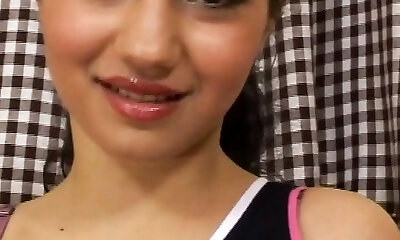 Beautiful and lean brunette white gal stripteases
