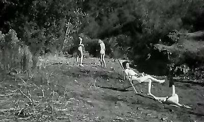 Five Vintage Nudist Babes Frolicking Around