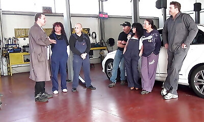 Gang-bang in the Mechanic's Workshop