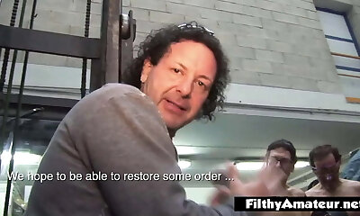 Husband watching wife gangbanged in restaurant and rectal in Bus
